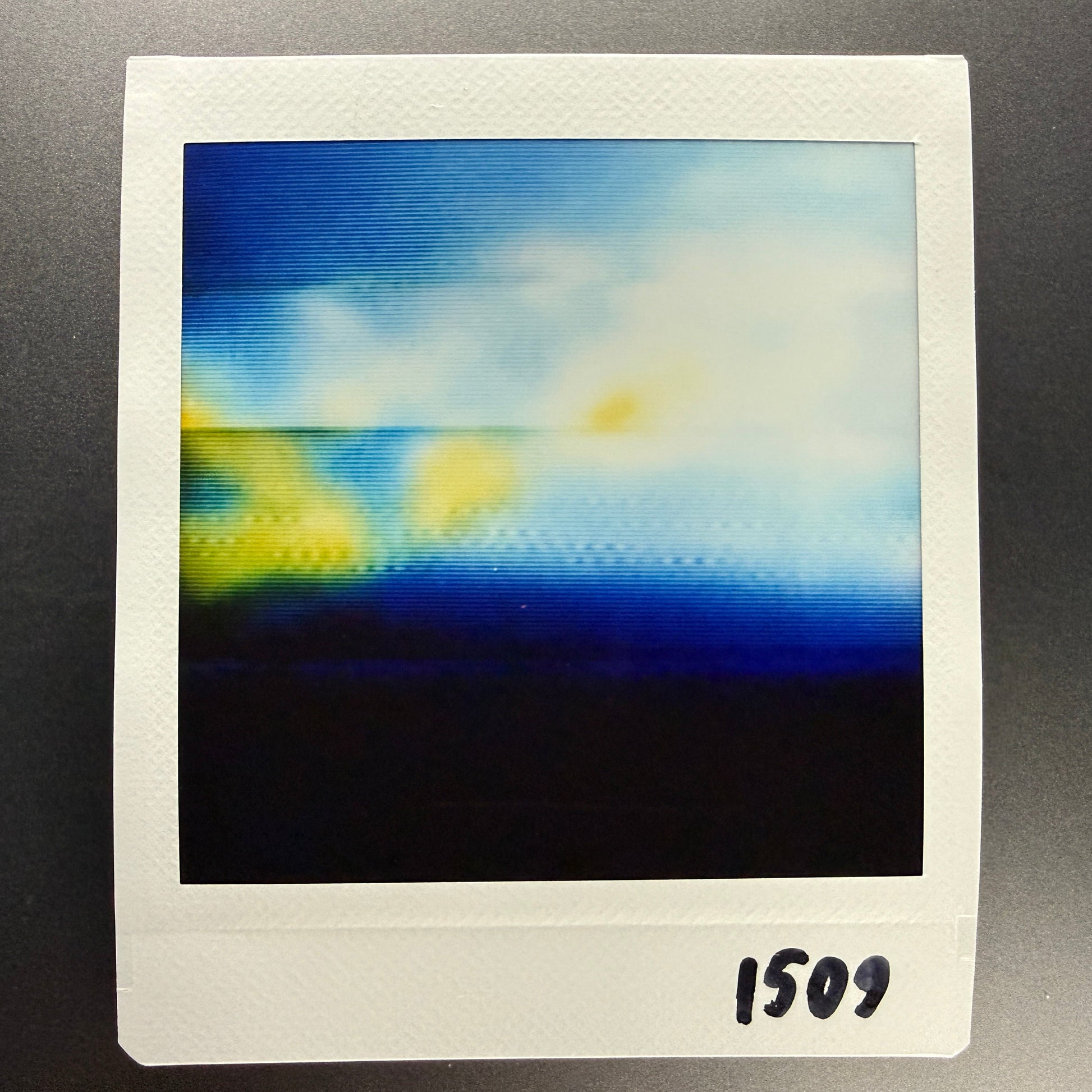glitch prints are on instax square film, which is similar to classic polaroids. the image is 62mm x 62mm. the border is 72mm x 86mm. the colours will vary slightly, as the glossy finish is hard to photograph. every one is one of a kind, and will not be reprinted.