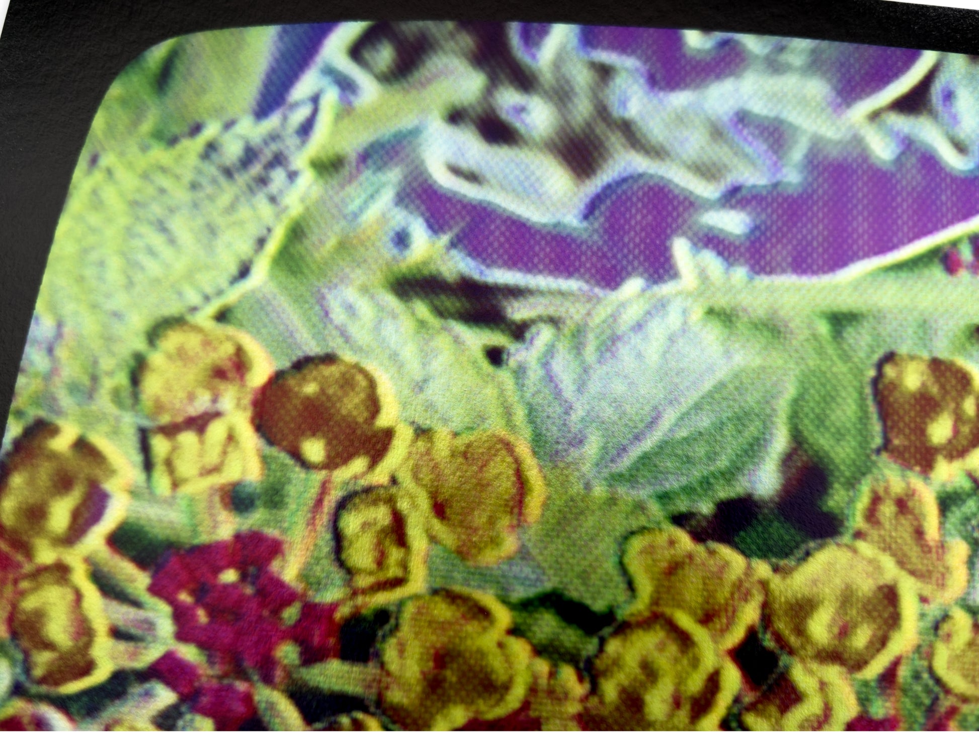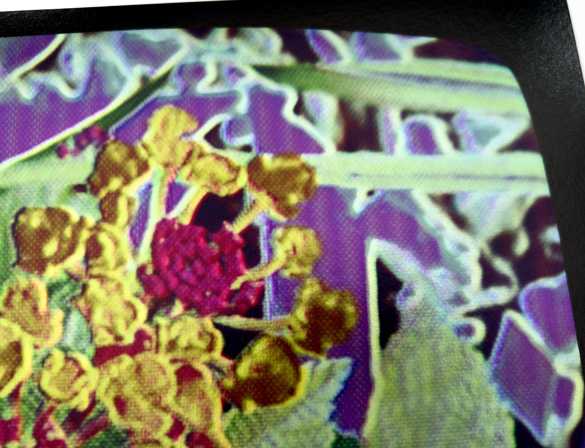 glitch prints are on instax square film, which is similar to classic polaroids. the image is 62mm x 62mm. the border is 72mm x 86mm. the colours will vary slightly, as the glossy finish is hard to photograph. every one is one of a kind, and will not be reprinted.